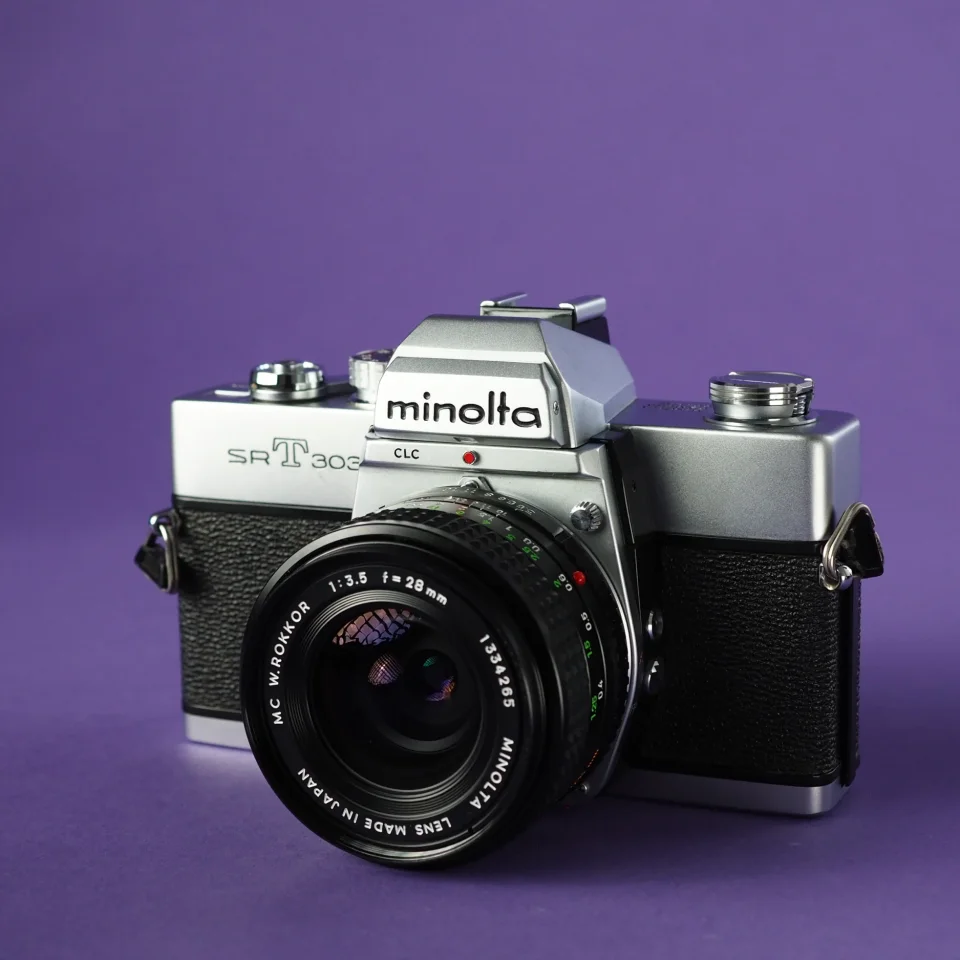 Spiegelreflexkamera - Minolta srT303 Kamera + MC W.Rokkor 3,5/28mm