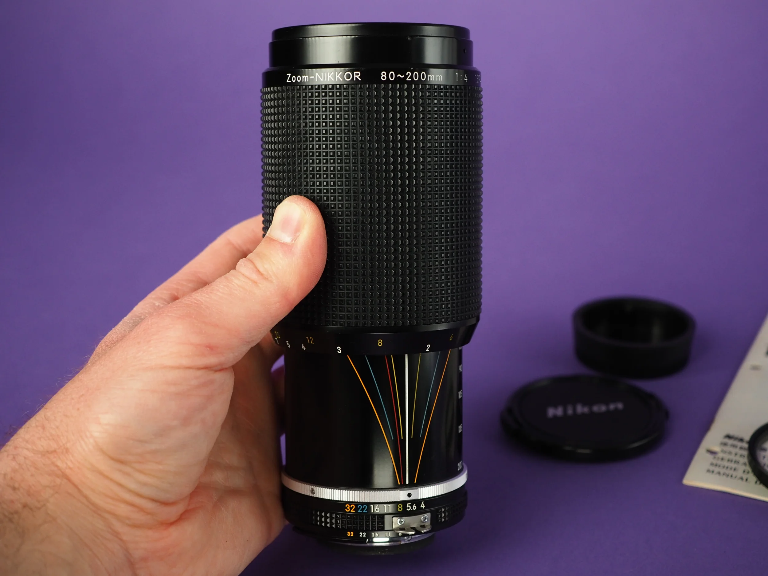 Objektiv ist in insgesamt gutem Zustand mit kleineren äußerlichen Gebrauchsspuren. Fokussierung und Zoom laufen komplett einwandfrei, aber minimal leichtgängig. Die Blende ist frei von Öl und schließt/öffnet sehr schnell. Die Linsen sind klar - kein Fungus, keine Kratzer und kein Belag auf/zwischen den Linsen. Lediglich leichter altersbedingter Staub zwischen den Linsen.