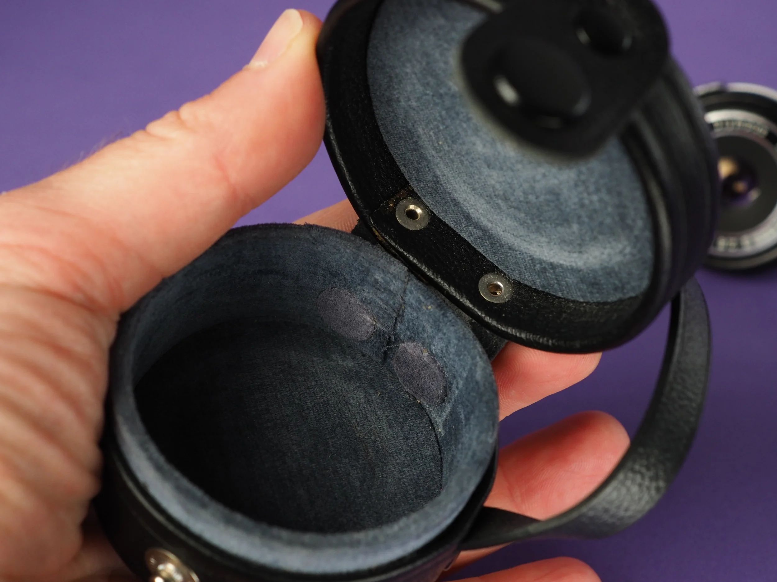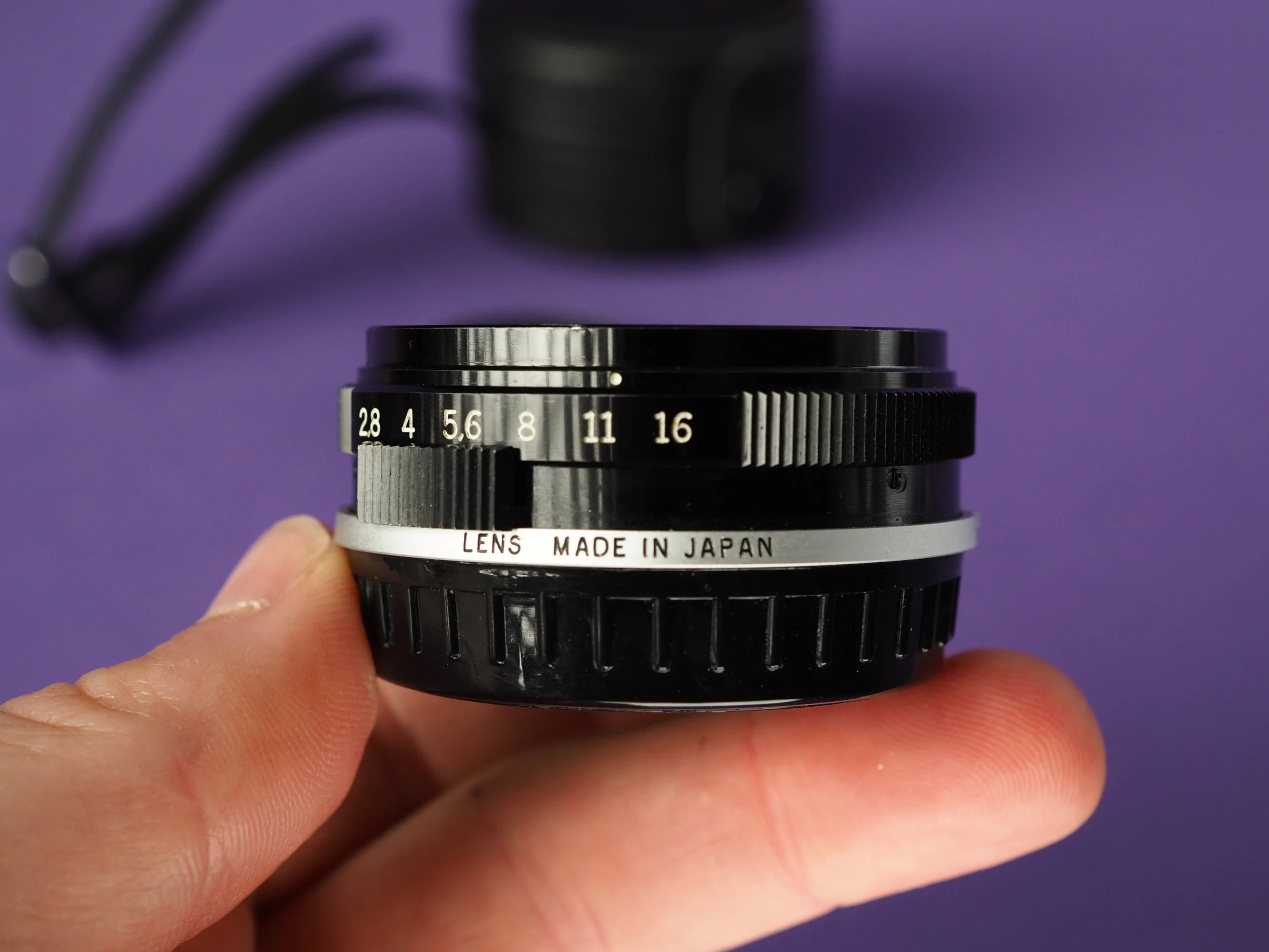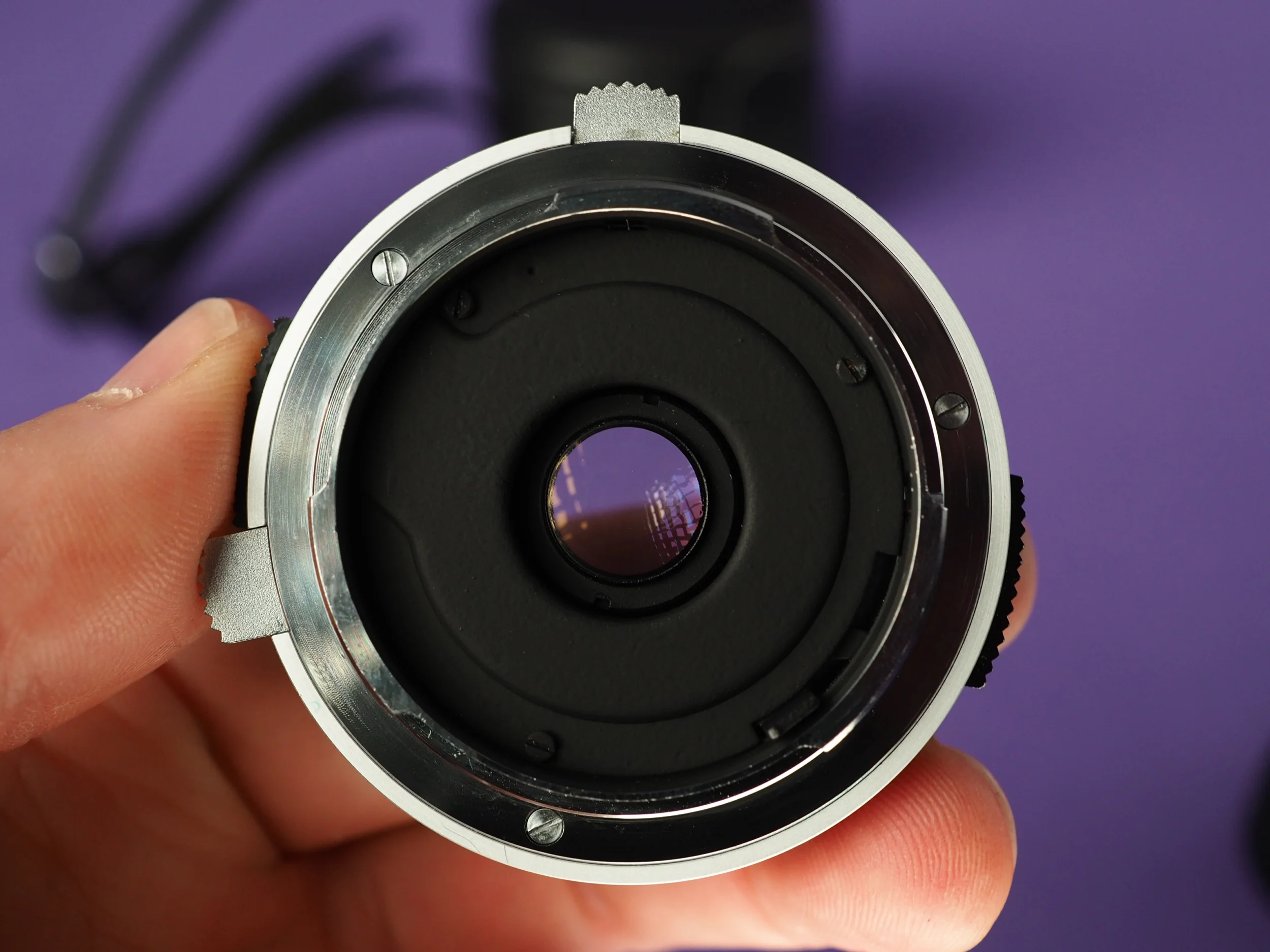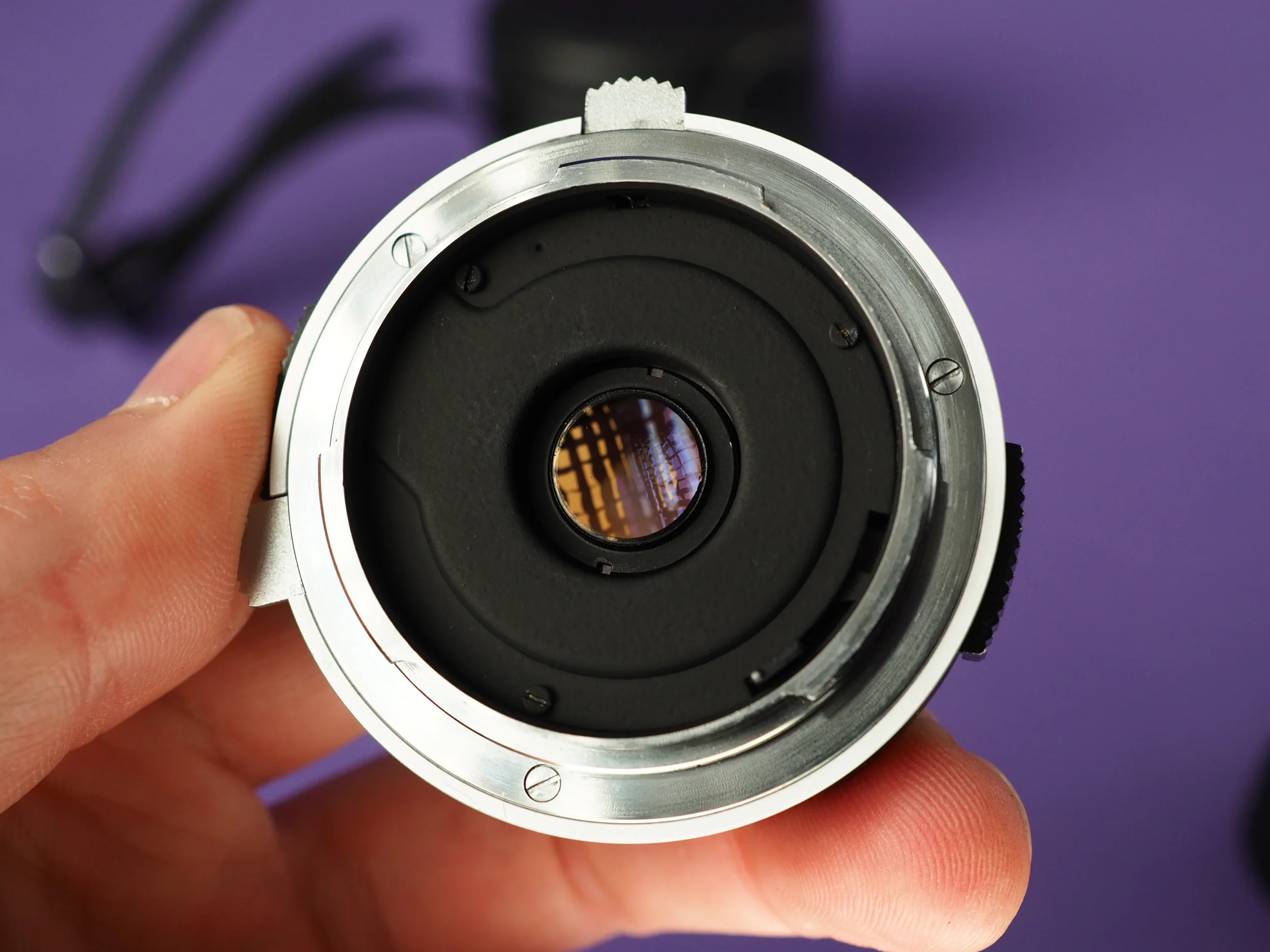 die Blende ist frei von öligen Rückständen. Altersbedingt kann sich vereinzelter Staub zwischen den Linsen befinden.