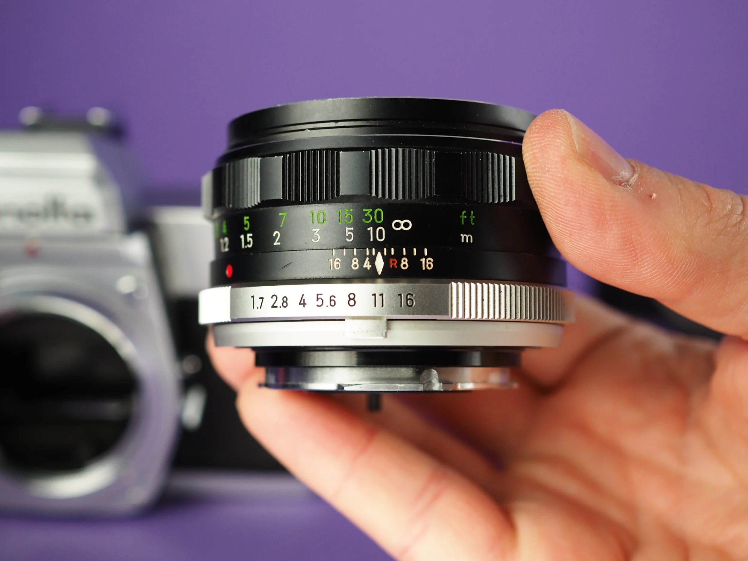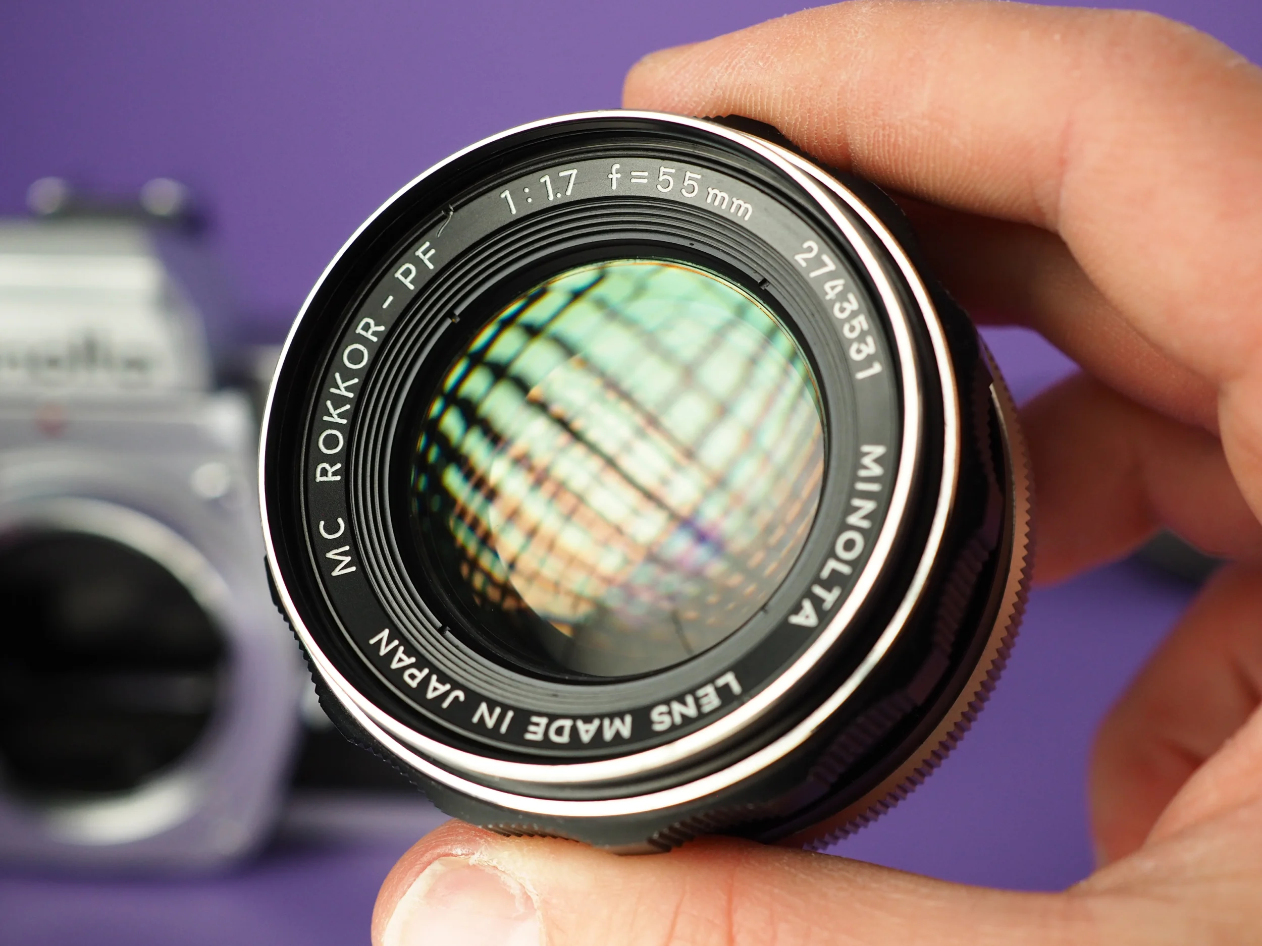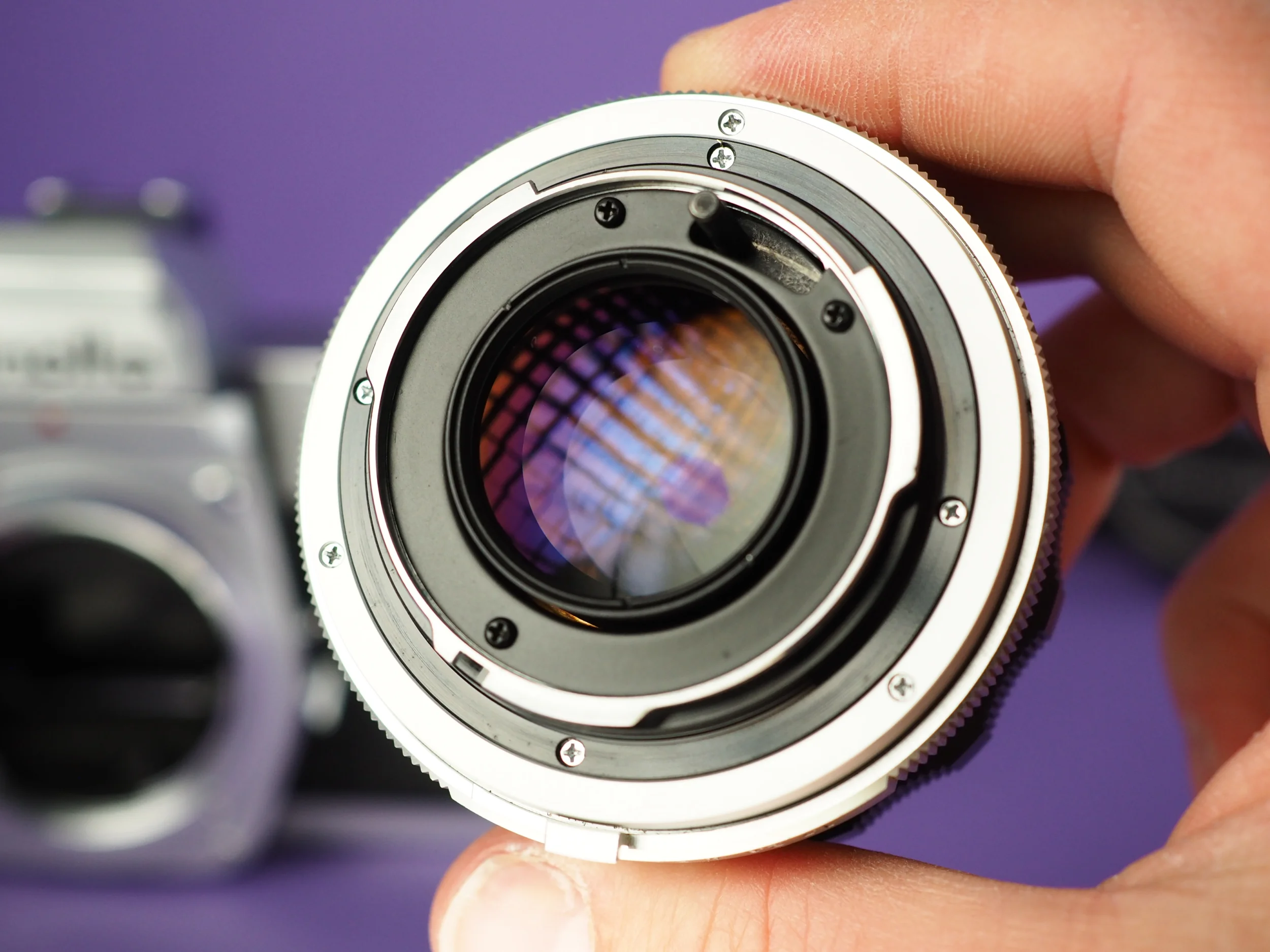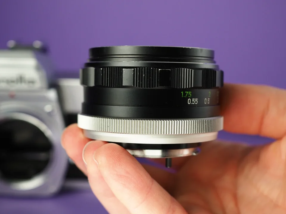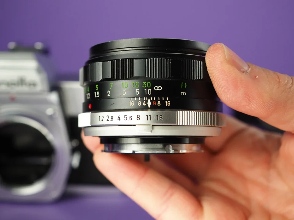 Die Kamera ist in hervorragendem Zustand. Die Zeiten laufen – lang wie kurz – sauber ab, der Selbstauslöser, der Filmtransport, das Zählwerk und alle sonstigen Funktionen sind überprüft und in Ordnung. Der Belichtungsmesser schlägt aus und zeigt plausible Werte. Lichtdichtungen und Spiegeldämpfer wurden komplett erneuert. Der gute Zustand gilt auch für die Optik: Fokus und Blende sind einwandfrei, die Gläser klar und frei von Fungus oder sonstigen Beschädigungen. Lediglich etwas altersbedingter Staub zwischen den Linsen. In diesem sehr guten Zustand mittlerweile sehr selten zu finden.